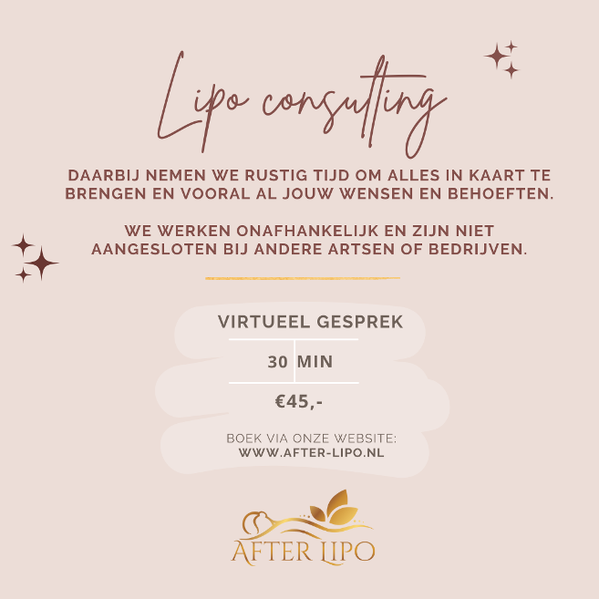 Met Lipo Consulting hebben we een online videogesprek voor de duur van ongeveer 30 minuten waarbij jij alle vragen omtrent cosmetische ingrepen kan vragen.